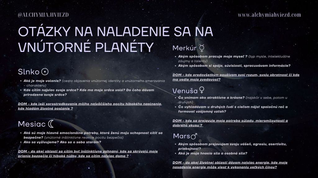 - Spojiť sa so svojimi Vnútornými planétami – cítiť ich impulzy, potreby a motivácie ako živú súčasť teba, nie len abstraktný koncept